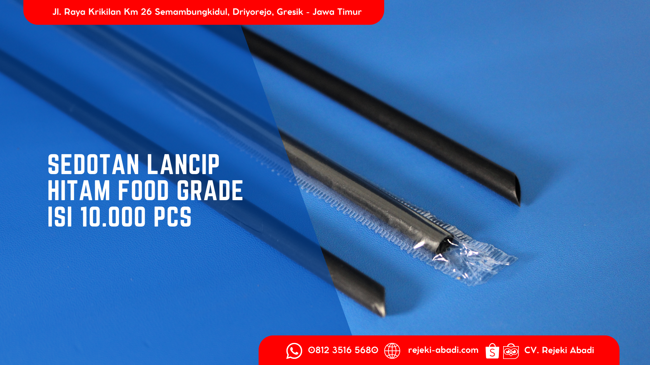 Sedotan Lancip Hitam Food Grade | Isi 10.000 Packing Kardus untuk Industri Minuman
